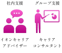 キャリアのかたちは一人ひとり異なります。「専門性を極めたい」「視野を広げたい」「新たなフィールドに挑戦したい」――私たちはそんな多様な想いを応援し、主体的にキャリアを考え行動する人をサポートする環境と制度を整えています。自分らしいキャリアを自ら描くための支援プログラムも豊富に用意。社員が自分の可能性に気づき、意思を持ってキャリアを選べるよう、上司とのキャリア対話はもちろん、各社で「イオンキャリアアドバイザー」を養成・配置することで、職場・会社の枠を超えてキャリア形成をサポートする体制も備えています。